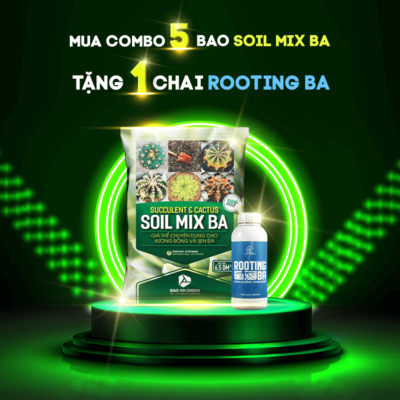 TẶNG NGAY 01 chai dinh dưỡng Rooting BA tốt cho mọi loại cây khi mua Combo 5 bao Soil Mix BA.